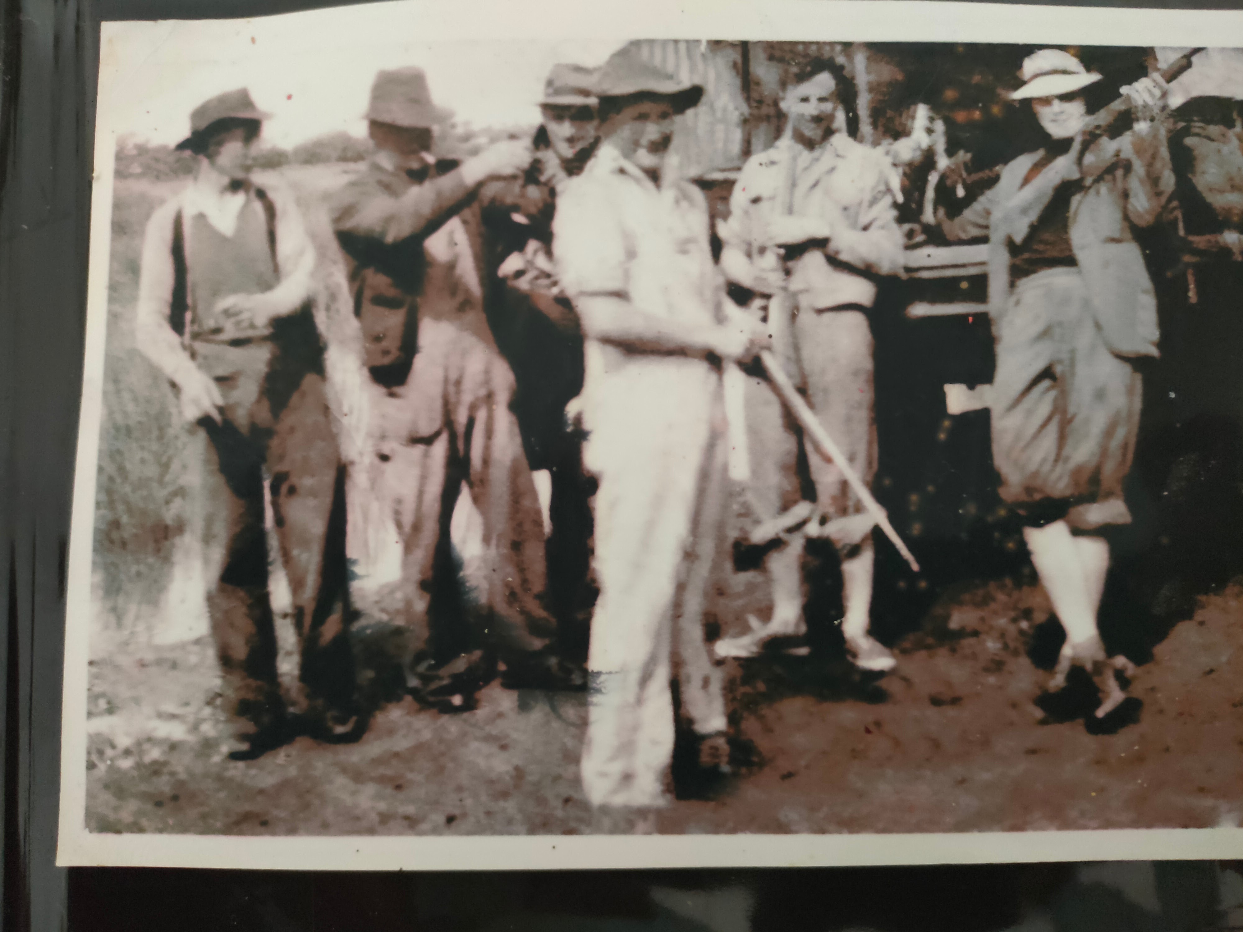 Dad reckons that the bloke up front is Lester and Stan is plucking a duck.